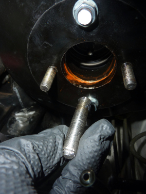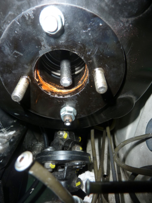 室内側で ステアリングシャフト根元の この4つの8ミリナットを外します
