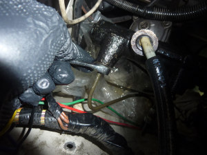 ブレーキのリンクのピンを抜いて外していき、ブレーキライトスイッチの配線を抜きます