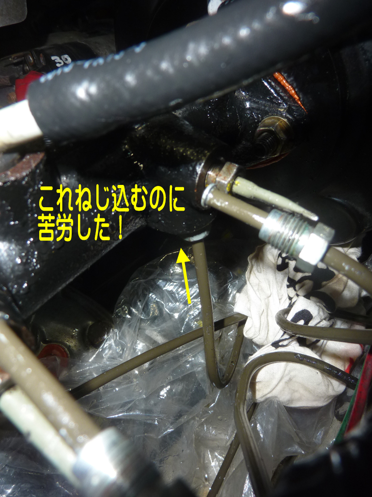 実際にブリーダプラグが当たる部分は、もう少し奥で