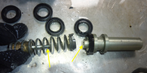 マスターシリンダの内壁もきれいに掃除してラバーグリスを塗っておく。